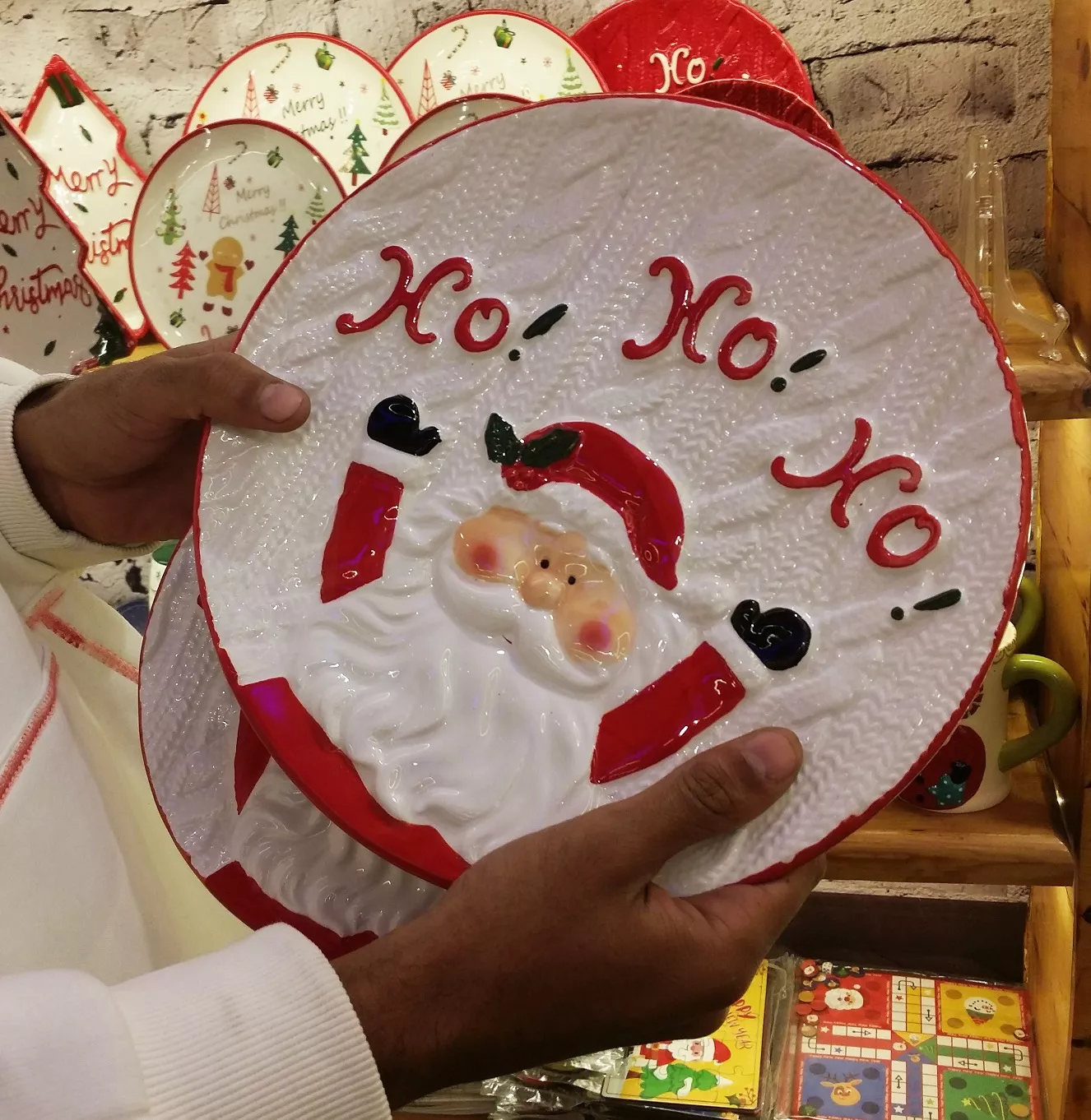 Christmas Ceramic Decorative Plate – Embossed Santa Design, Available in Two Sizes