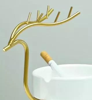 Ceramic Ashtray in Gold Deer Frame – Artistic Elegance with Functional Luxury