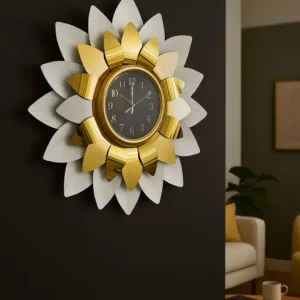 Be the first to review “Decorative Wall Clock – Gold & White Flower Design” Cancel reply
