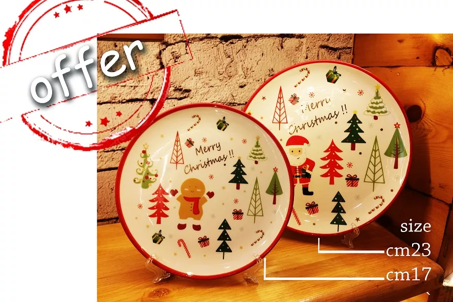 Red ceramic plate featuring playful holiday illustrations including Christmas trees, gingerbread man, wrapped gifts, candy canes, stars, and the phrase Merry Christmas in a fun font, the raised design and textured background add warmth and charm making it perfect for serving treats or decorating your holiday table at home, in stores, or offices