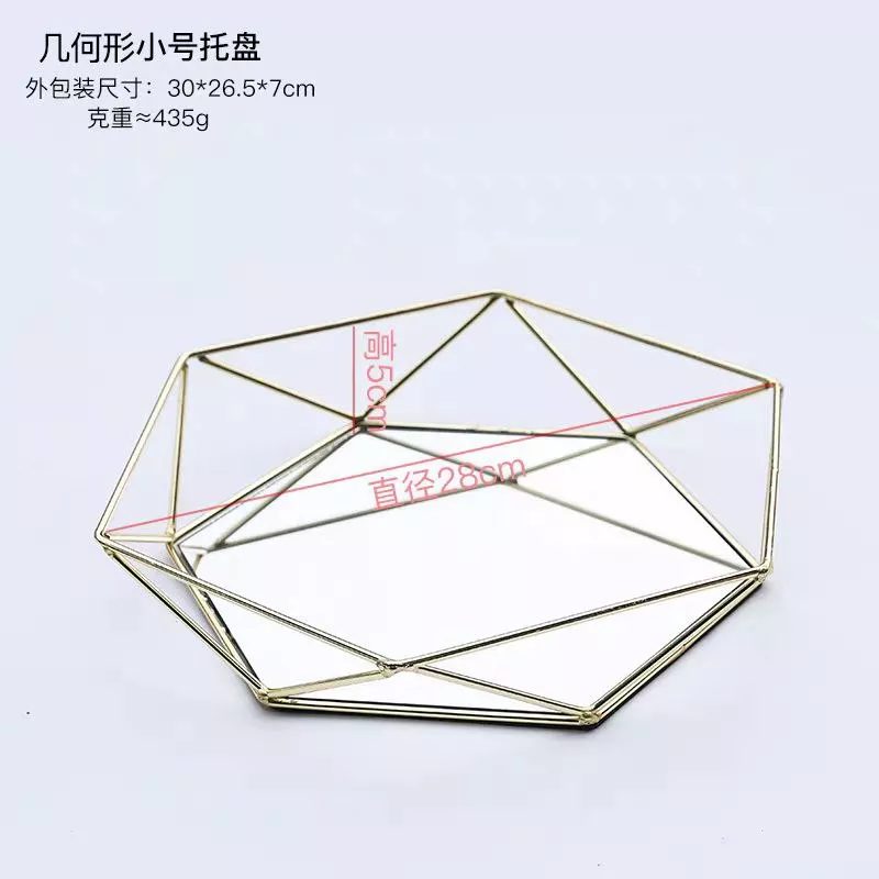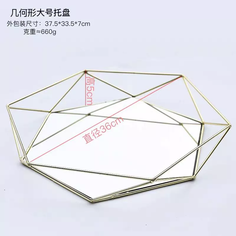 Geometric Mirror-Base Decorative Tray – Elegant Gold Design in Two Sizes