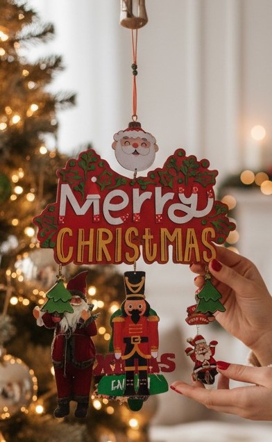 A cheerful decoration blending classic holiday icons and vibrant colors — perfect for adding warmth and festive charm indoors.