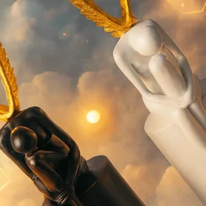 Be the first to review “Abstract Angelic Sculptures – Black & White Seated Duo with Golden Wings” Cancel reply