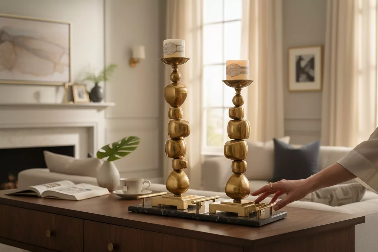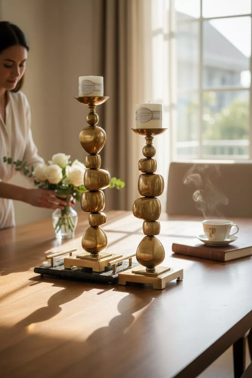 Crafted from premium gold-plated metal with a sturdy geometric base, this set adds a sophisticated statement to living rooms, entryways, or dining tables.