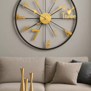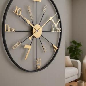 Be the first to review “Modern Decorative Wall Clock – Open Face Design with Gold Mixed Numerals and Black Frame” Cancel reply