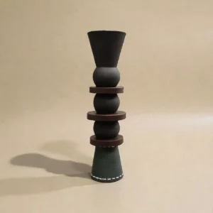 A 34cm incense burner with geometric balance and modern flair, featuring a dark green cone base, stacked spheres, and elegant wooden discs. Perfect for homes, offices, or meditation spaces, it ensures smooth incense diffusion through precise airflow. Crafted from premium materials for durability and visual impact