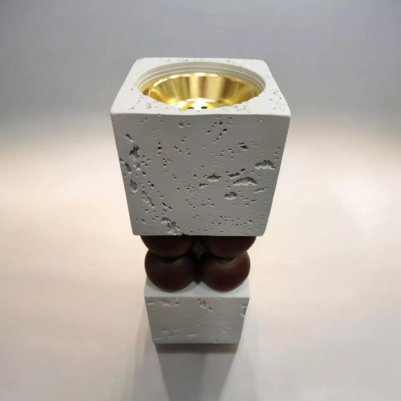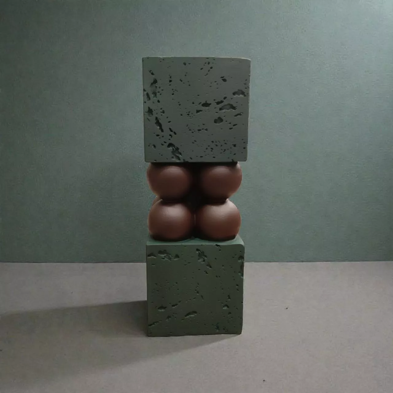 Premium 20cm incense stand crafted from dark textured blocks resembling natural stone, interspersed with smooth brown spheres for visual harmony and elegance.